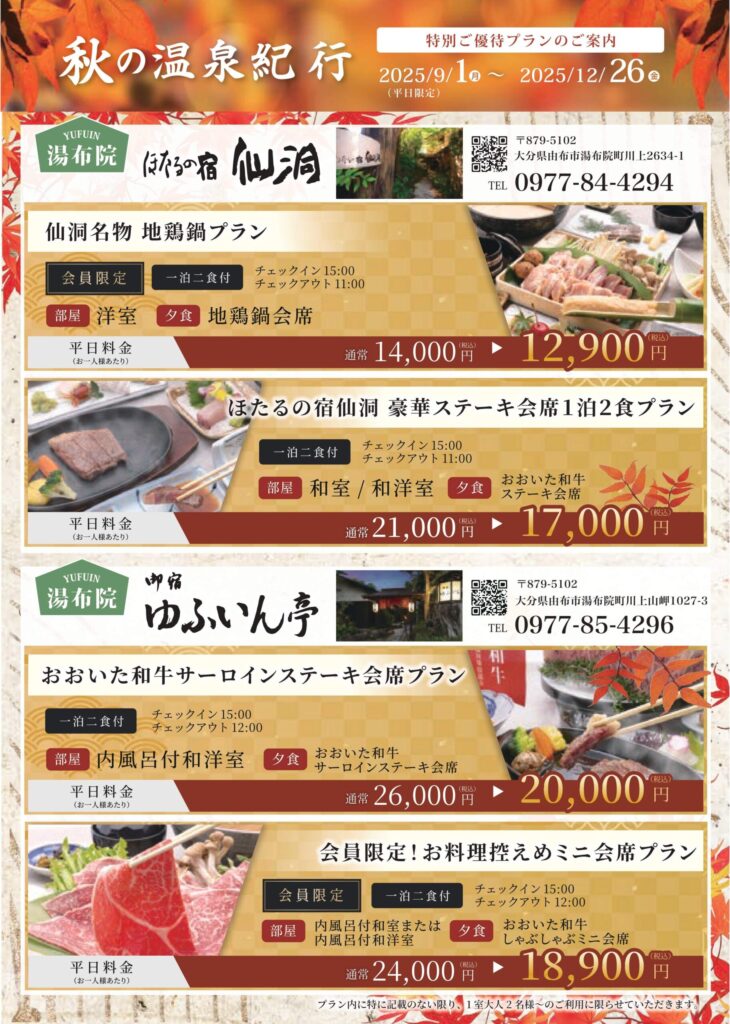 天然由布院温泉をお楽しみいただけます